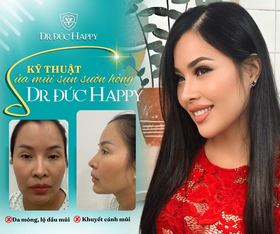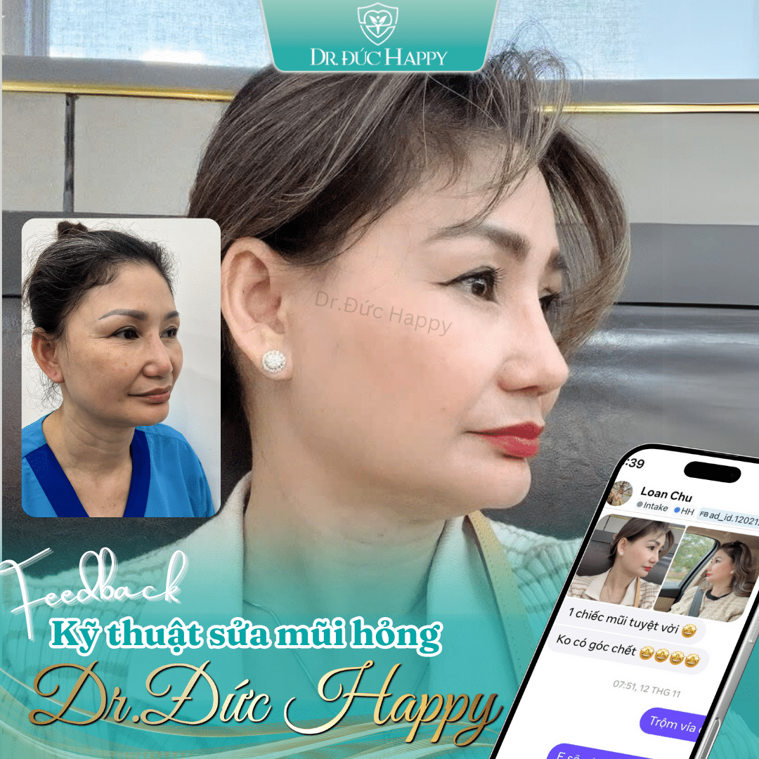 Với kinh nghiệm xử lý hàng nghìn ca sửa mũi phức tạp, Dr.Đức Happy đã phát triển kỹ thuật sửa mũi sụn sườn hỏng chuyên biệt, giúp khắc phục triệt để biến chứng, tái tạo dáng mũi thẩm mỹ, hài hòa và ổn định lâu dài.